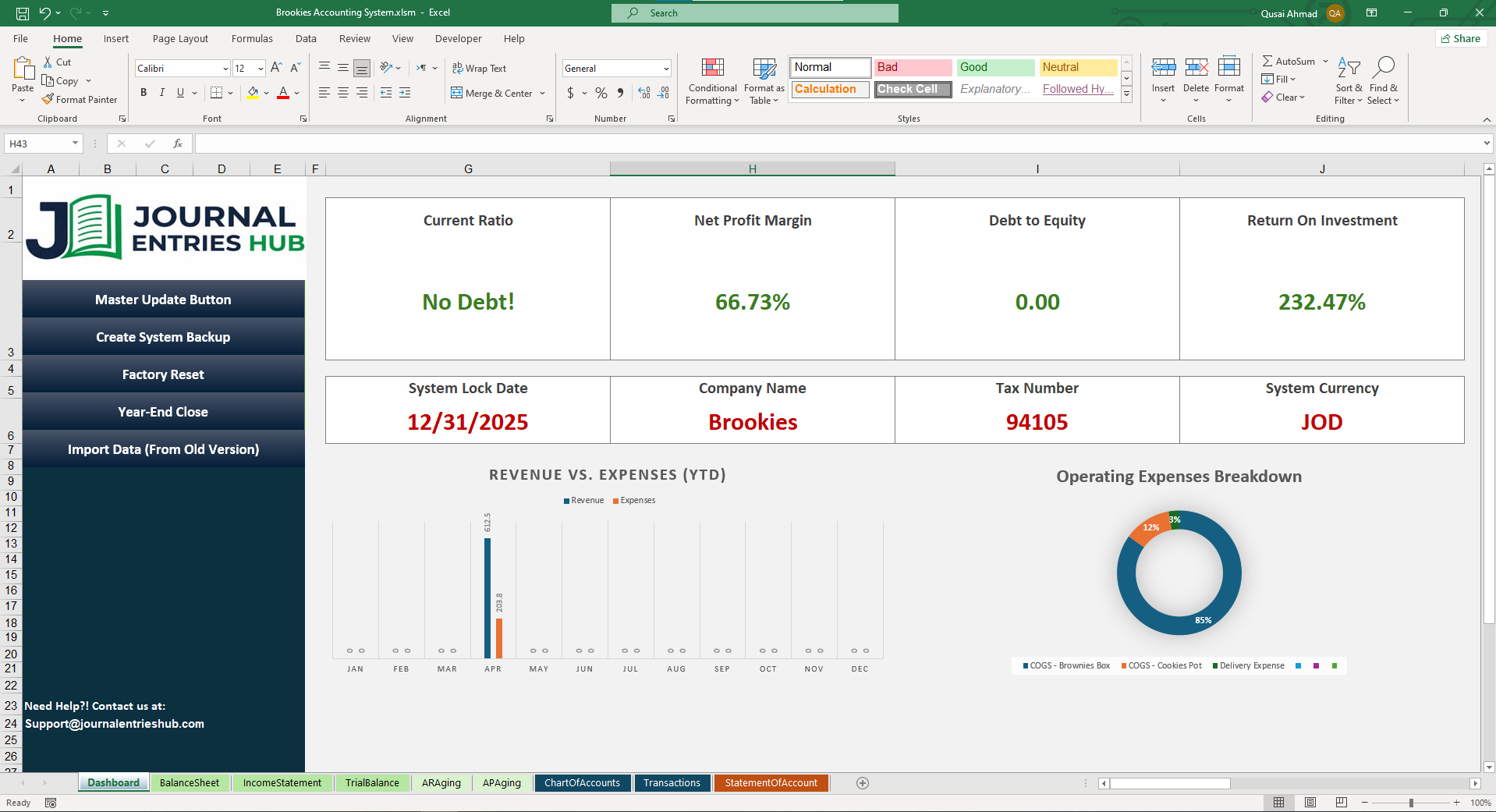 This isn't a basic template; it's a VBA-coded accounting engine. Built on a standardized Double-Entry core, the Suite ensures your General Ledger, Trial Balance, and Financial Statements remain in perfect sync with zero manual reconciliation required.